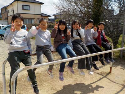 ☆地域を愛し、豊かな心と進んで学ぶ意欲を持ち、明るく生活する子どもの育成☆   パートナーとのお別れの日が近付いてきました。 6年生と1年生、お互いがお互いを求め、ずっと一緒に過ごしてきました。休み時間になると、6年生は1年生の教室に足を運び、「元気?」と声かけたり手を振ったり。それを見て、6年生に抱きつく1年生。このようなほほえましい光景が毎日見られました。 先週金曜日は、最後の交流会でした。1年生は卒業式には参加しませんので、明日が6年生と過ごせる最後の1日となります。どうかいいお別れができますように。