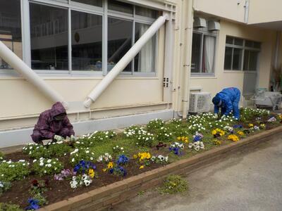 毎日、給食のご飯やパンを運んできてくださる方。壊れた物や設備を修理してくださる方。大きな行事の前には、シルバー人材の方々が花壇や校庭の草取りをしてくださいます。私たちの見えないところで、多くの方々が働いてくださり、学校生活が成り立っています。
