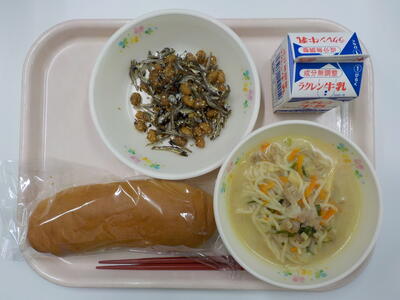 大豆といりこの揚げ煮は、食感が良く美味でした。ラーメンは、麺の硬さが丁度良く、とてもおいしい給食でした。ごちそうさまでした。