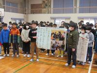 ① 全校のみんなで6年生へ感謝の気持ちを伝える。