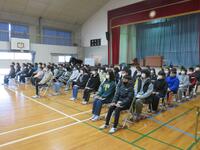 修了式の後は、生活指導の先生より、「きまりを守って楽しい春休み」について話をしていただきました。