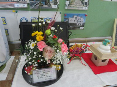花ボランティアさんが、始業式の日にお花を玄関に飾って下さいました。新年バージョンのお花にこちらまで気分が凛とします。