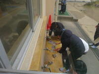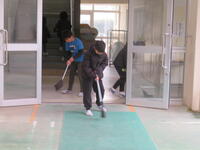 二つ目は、運動場から教室に戻る時、シューズについた砂が校舎に広がらないように、雑巾で拭いてくれたり、校内を掃除している6年生の姿がありました。