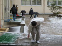 そんな中、6年生が中心になって、玄関の段差で滑らないようにと、朝から雪かきや掃除をしてくれました。自分たちで考えて行動する姿が素晴らしいです。