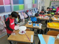 1時間目に、1年生の授業におじゃましました。今日の授業は、図工です。
