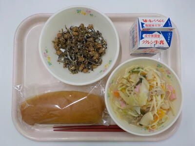 大豆といりこの揚げ煮は、食感が良く美味でした。ちゃんぽんは、具だくさんで温かく、とてもおいしい給食でした。ごちそうさまでした。