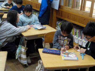 今日の昼の時間は、1~5年生による縦割り活動でした。一年間お世話になった6年生に、手紙を書いたり飾りを作ったりしました。5年生がリーダーとなって前で説明したり、「わからないことがあったら何でも聞いてね」と優しく声をかけたり、大変頼もしかったです。在校生の感謝の気持ちが、きっと6年生にも伝わると思います。