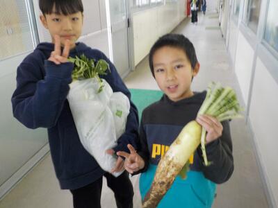先週金曜日は、4年生の農業体験でした。天気に恵まれず何度も延期となっていましたので、念願のダイコンの収穫でした。大変寒い中でしたが、とても大きく、立派なダイコンを収穫することができました。農業体験施設に皆様、これまでのお世話や収穫の準備など、何から何までありがとうございました。