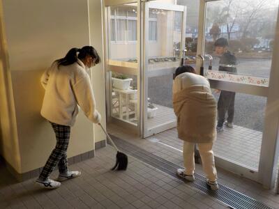 「ありがとうね。何か決まった仕事で掃除してるの?」と聞くと、