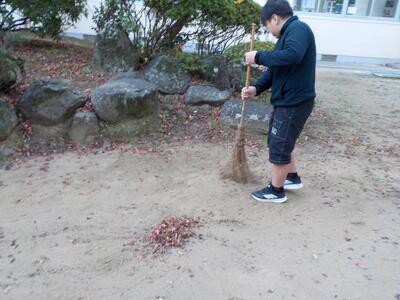 今朝は、一段と冷え込みました。そんな中、6年生が自主的に早朝より落ち葉拾いをしてくれていました。経験のある方はわかると思いますが、この時期に竹ぼうきを握ると、手の体温を奪ってどんどん冷たくなっていきます。それでも、爽やかに掃除をしてくれる6年生。本当に頭が下がります。見えないところで学校を支えてくれる6年生、本当にありがとう。