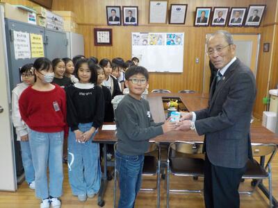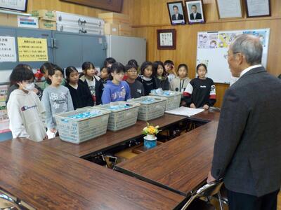 今日の昼休み、佐々町社会福祉協議会の方々に来ていただき、4年生の赤い羽根共同募金実行委員のメンバーが直接手渡ししました。その後、会長様からお話があり、なんと佐々町は56年連続目標募金クリアとのことです。佐々町は心優しい方々がたくさんいるのだと、子どもたちも誇らしげでした。ご協力いただきました子どもたち、保護者の皆さま、ありがとうございました。