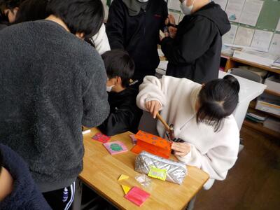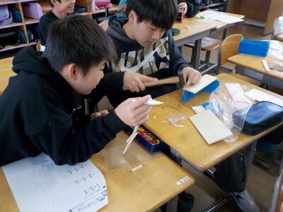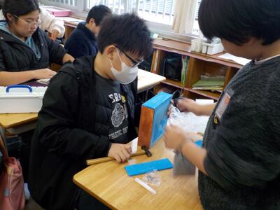6年生の図工では、現在箱作りを行っています。板を糸のこで切り、かなづちで箱に仕上げます。子どもたちは、小物入れや貯金箱にするようで、完成が楽しみです。